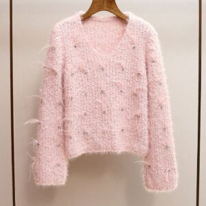 New fashion design lazy style irregular feather hem knitted sweater